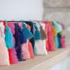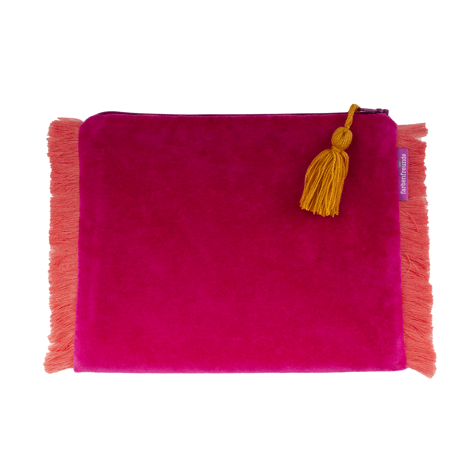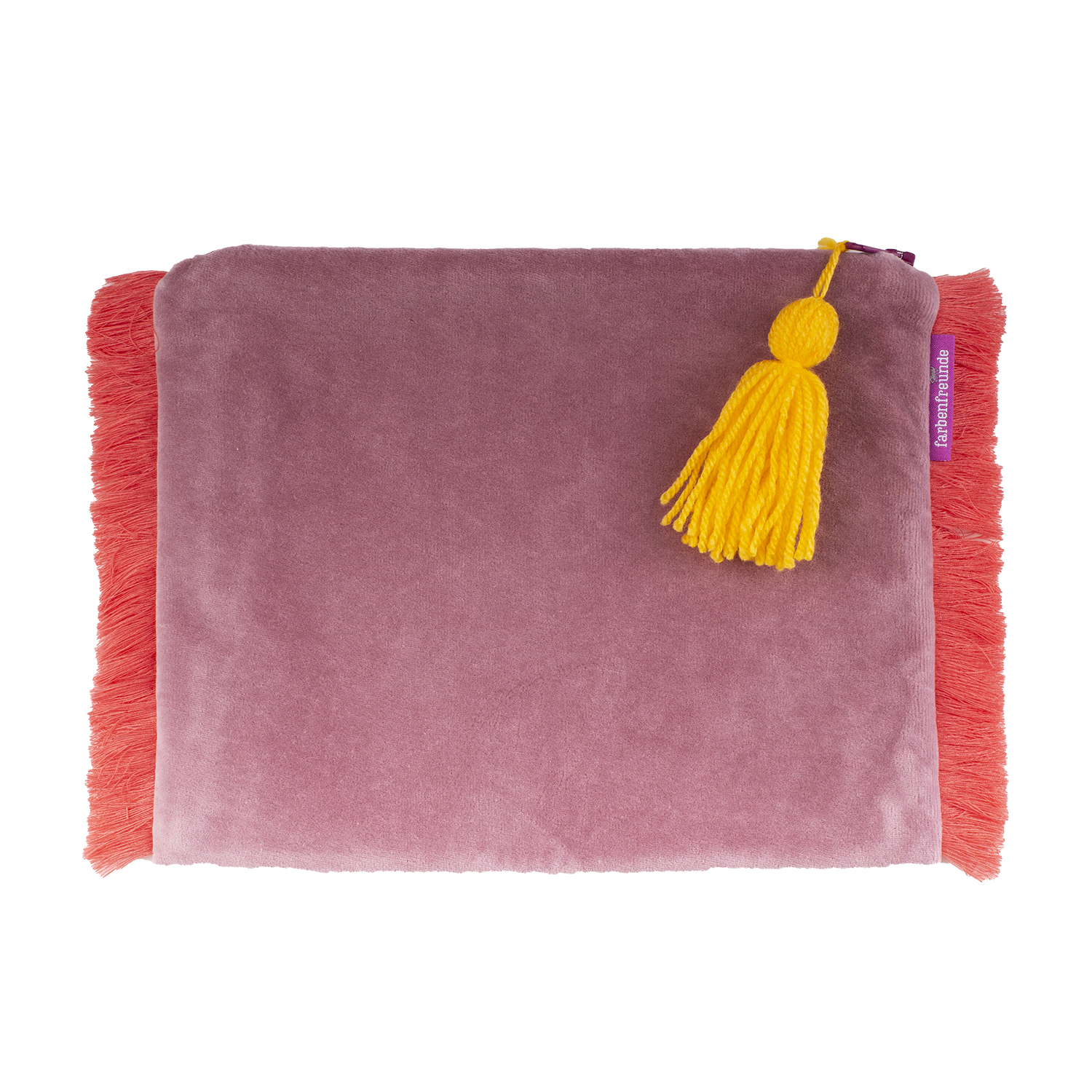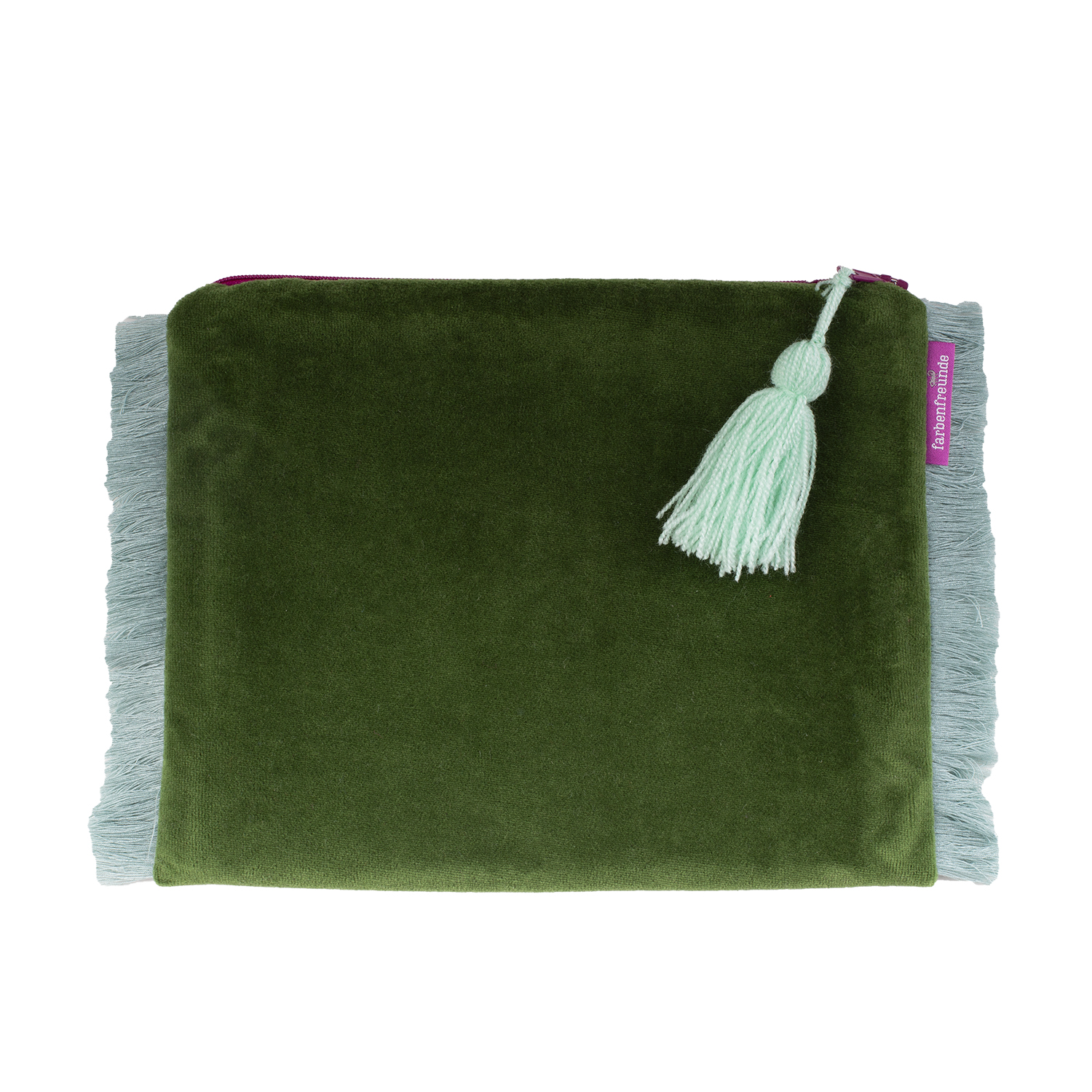 Die Tasche ist außen aus weichem Nicky und innen mit schwarzen stabilen Kanvas gearbeitet. Besondere Akzente setzt die farbige Fransen Bordüre und eine Troddel in Kontrast Farbe.