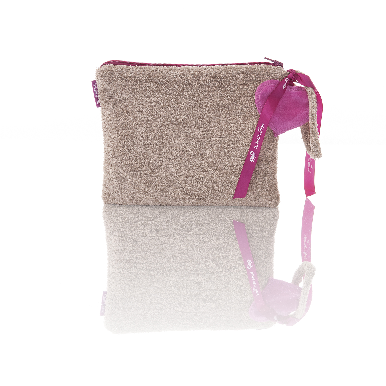 Diese Sommerversion der klassischen Clutch ist einfach superpraktisch und stylish! Einfach der perfekte Begleiter für jedes Sommeroutfit. Darin sind die wichtigsten Dinge verstaut, die Sie immer griffbereit haben möchten. Die Schlaufe sorgt für einen sicheren Sitz an Ihrem Handgelenk. Ein zusätzlicher Hingucker ist das kleine separat angebrachte fuchsiafarbene Herz aus Nicky. Die Tasche ist in zahlreichen Farbvariationen erhältlich und hat einen pinkfarbenen Reiverschluss. Gefüttert ist sie mit grauem abwaschbaren Nylon.