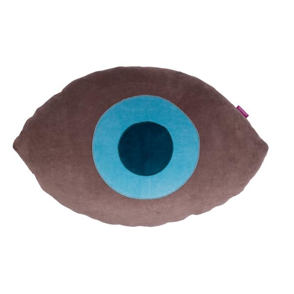 Ein Nickykissen in Form eines Auges mit applizierter Pupille. Ein Wohlwollender Blick wird immer auf dem Besitzer dieses Kissens ruhen. Sehr schlicht und sehr aussagekräftig.