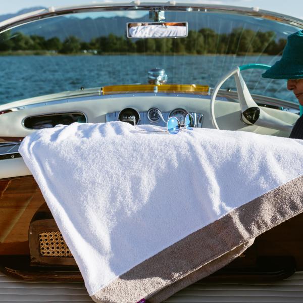 LUXUS PUR. Egal ob für Ihre Sonnliege, am Strand oder auf dem Boot. Dieses Plaid wurde double face verarbeitet. Es hat nichts mit einen Handtuch zu tun, sondern besticht durch sein Gewicht und seine nach außen verlaufende Innenseite.